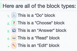 Block types are Methodable’s version of a programming language: they’re little pieces of information that tell the computer how to best guide the user…
